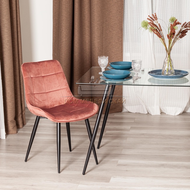 Стул ABRUZZO mod. 8060, вельветовый кораллового цвета HLR 44/черный