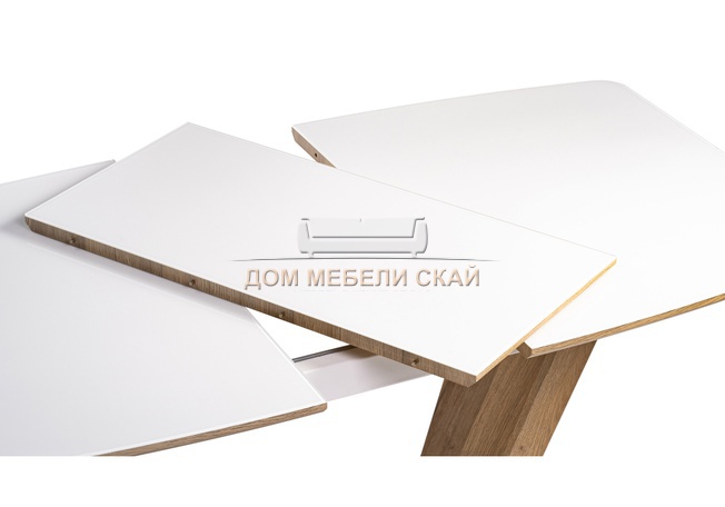 Стол обеденный раскладной Питер, ультра белый/дуб вотан