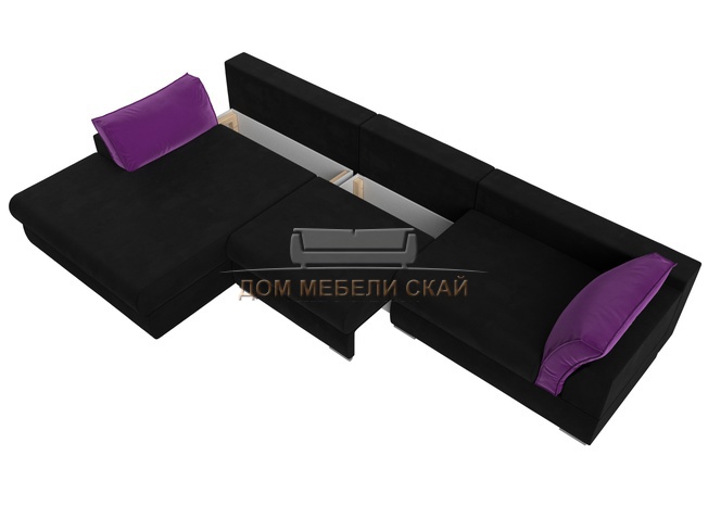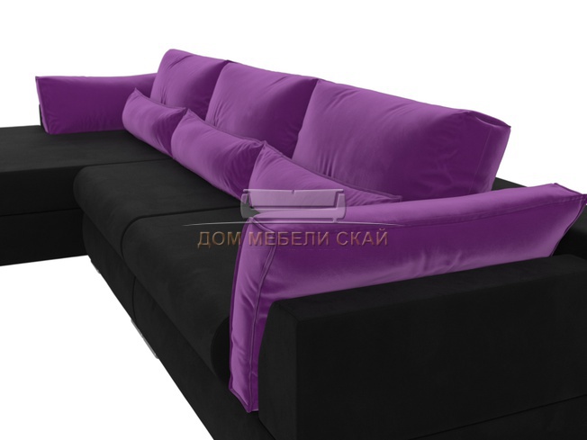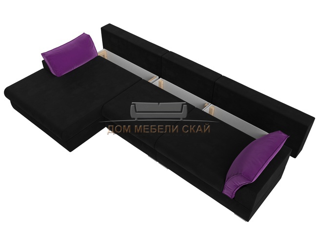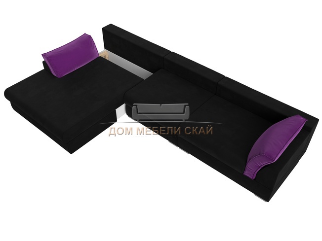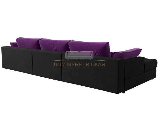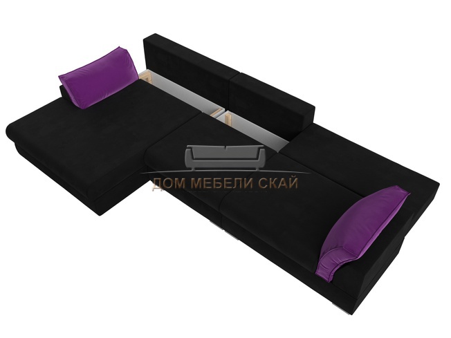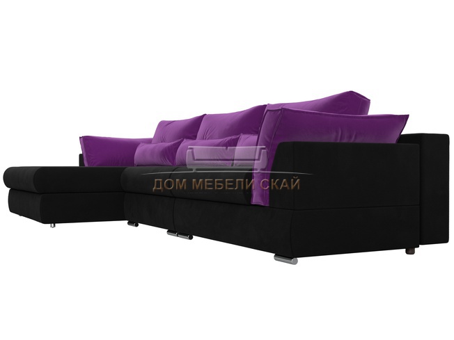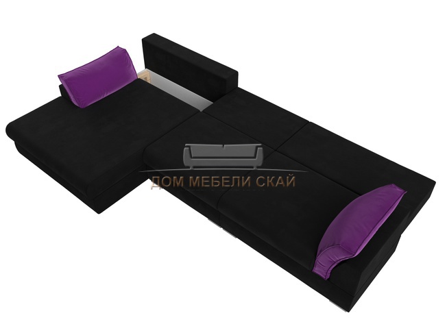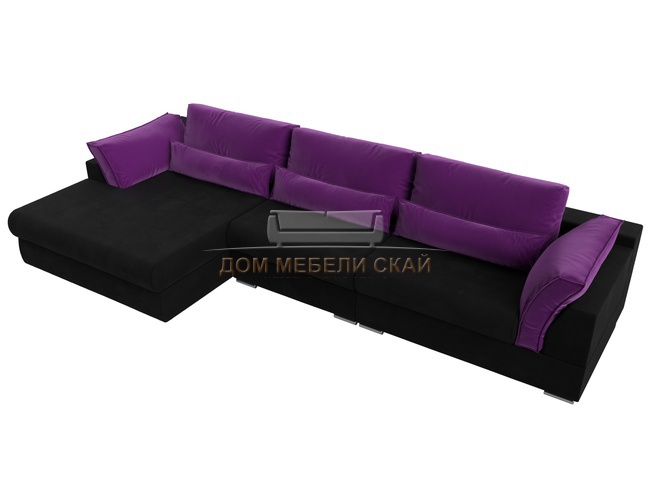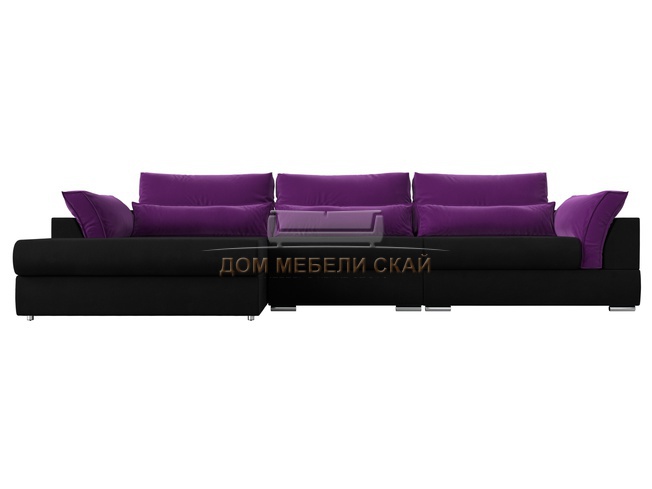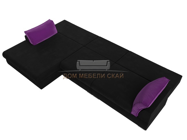 Угловой диван Пекин Long левый, микровельвет черный/фиолетовый