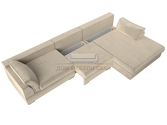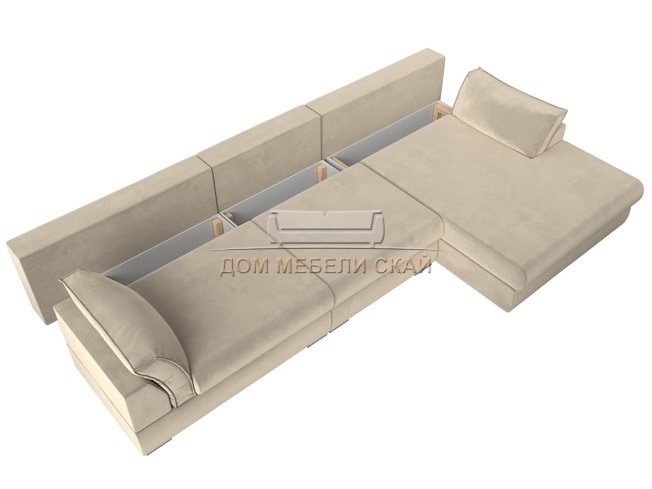 Угловой диван Пекин Long правый, микровельвет бежевый