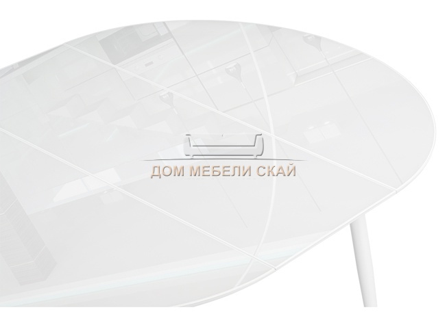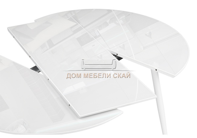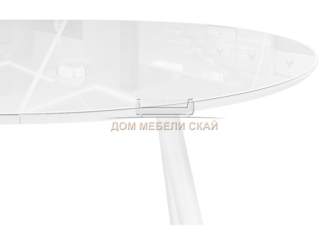 Стол обеденный круглый раскладной Абилин 100, ультра белое стекло/белый/белый матовый
